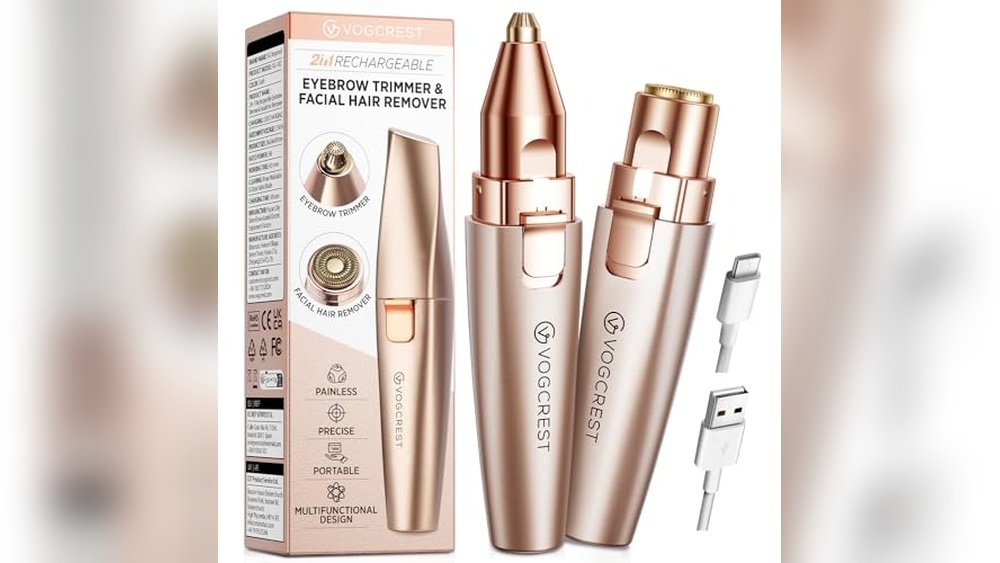 - Dual-function: combines face shaver and eyebrow trimmer for versatile use.