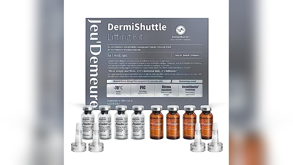 The JEU’DEMEURE DermiShuttle Lifting Kit uses collagen and peptides to firm skin. It hydrates and reduces wrinkles over eight weeks. This Korean skincare serum supports skin elasticity and provides a visible lifting effect with consistent use.