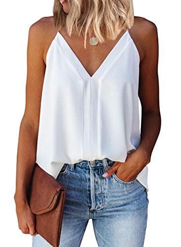 miduo Womens Tanks Casual Summer Fashion 2024 V Neck Strappy Tanks Tops Loose Cami Sleeveless Shirts Blouses White S
